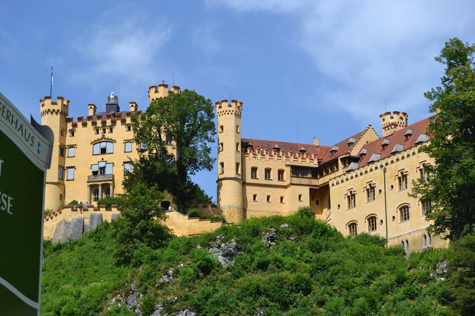 Una vez en el interior nos encontramos con las mismas restricciones que en el anterior, no estaban permitidas las fotografías de las estancias. Eran unas estancias enormes, con motivos góticos, en este castillo abundan los pasadizos y habitaciones secretas. Es el típico castillo de las películas. Es EL CASTILLO. Subiendo por unas enormes escaleras de caracol llegamos a lo alto, a las almenas del castillo, desde aquí las vistas son impresionantes. Desde allí se podía ver el puente en el que nos encontrábamos anteriormente, viendo la altura a la que habíamos estado, nos daba un vuelco el estómago. También podíamos ver una espectacular imagen del castillo de Hohenschwangau.
